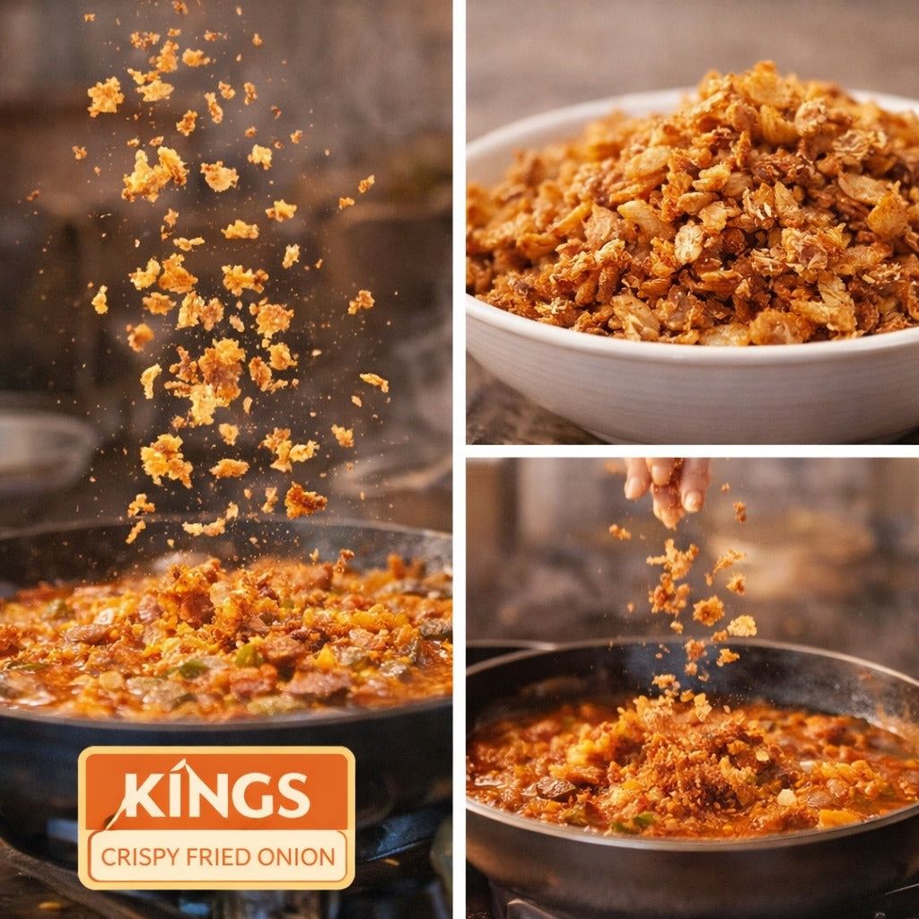 Respect your time, Support your daily routine, Deliver consistent quality you can trust Kings Crispy Fried Onion is here to make everyday cooking simpler, calmer, and more enjoyable.